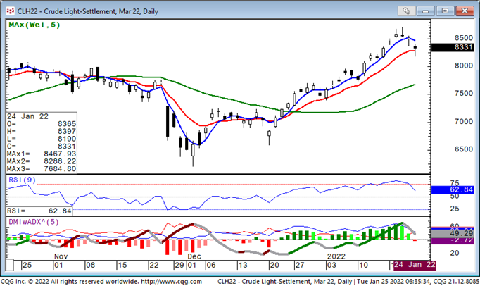 Crude Oil is Bearish Within Overall Bullishness, Unless we Take out Formation Above 1/25/22